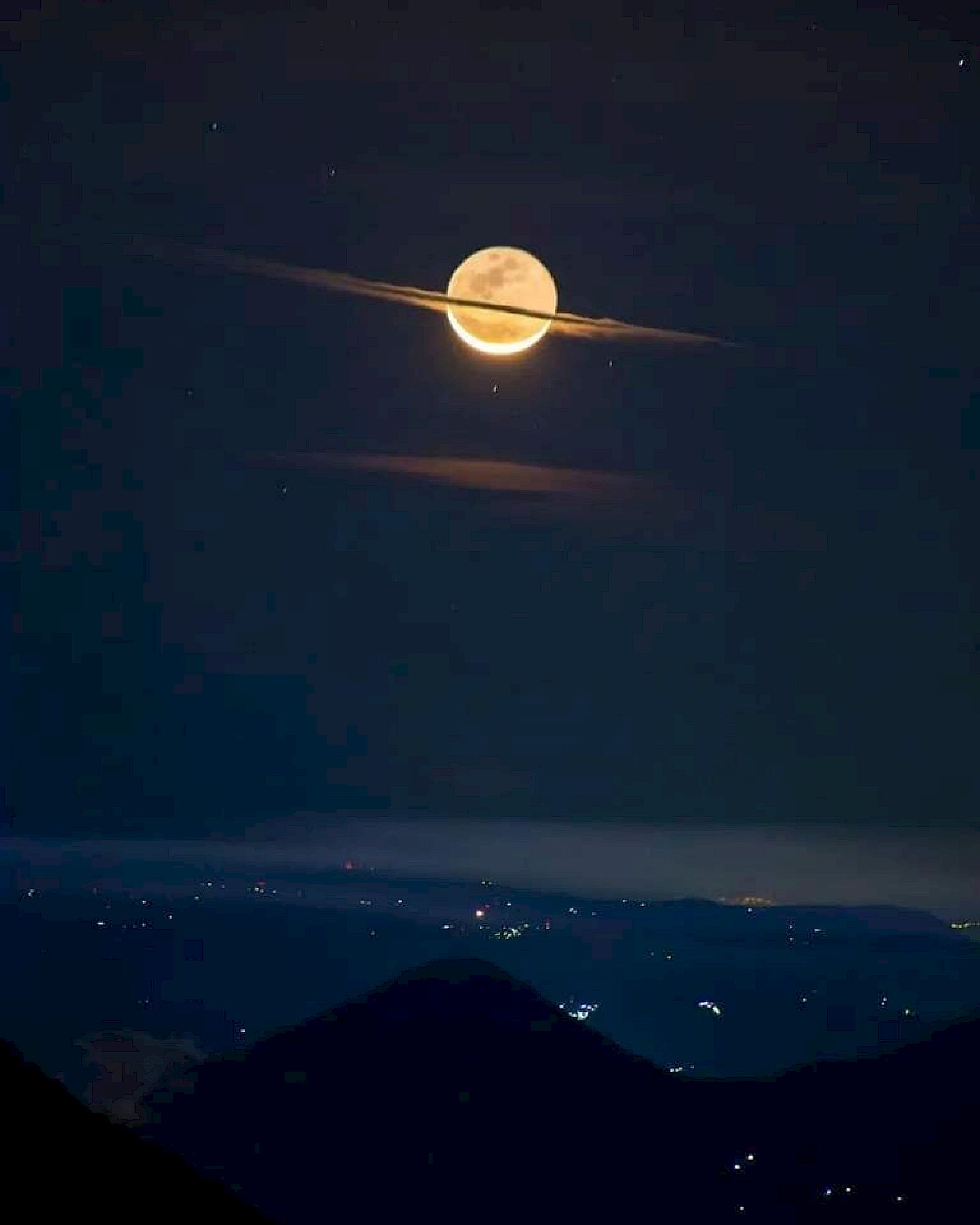 • The image shows a luxurious poolside view at night with a modern building and glowing lights creating a serene atmosphere.