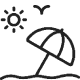 • Deck chairs and umbrellas by a pool with a scenic ocean view, palm trees, and a clear sky in the background.